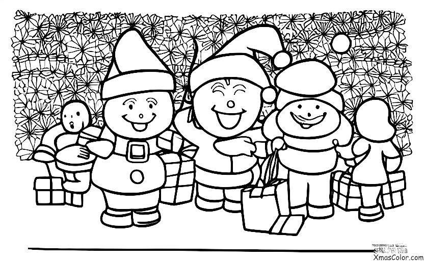 Santa is standing in a rice paddy with his bag of presents. He is surrounded by happy children who are excited to see him.