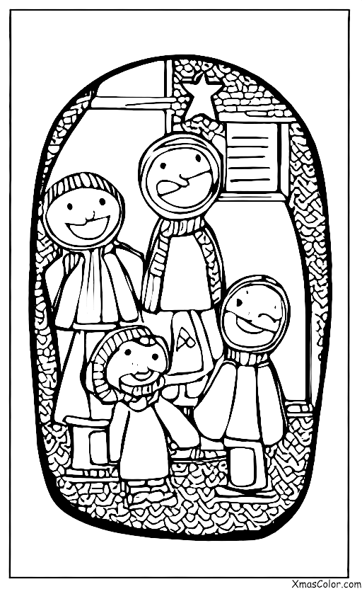 The people are all bundled up in winter clothes. They are smiling and singing as they go door to door.