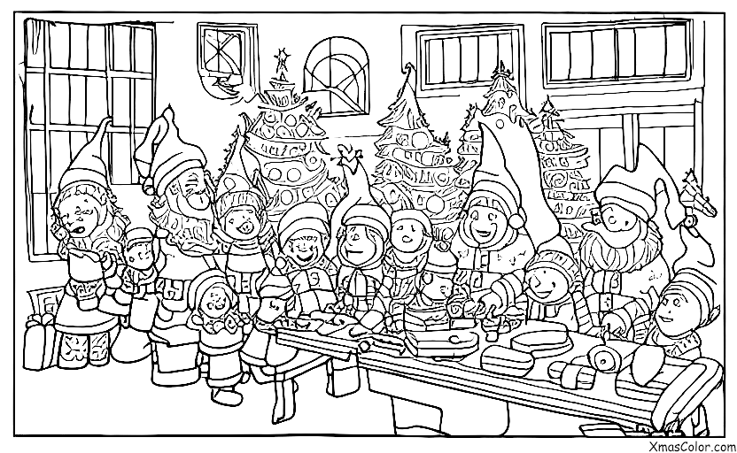Santa is surrounded by his elves as they make toys in his workshop. The North Pole is a magical place full of snow and ice.